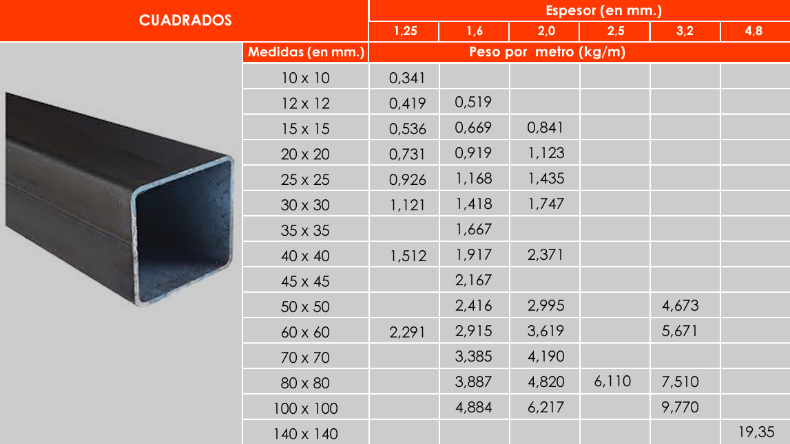 Caños rectangulares, cuadrados y redondos. Mecánicos y pasamanos