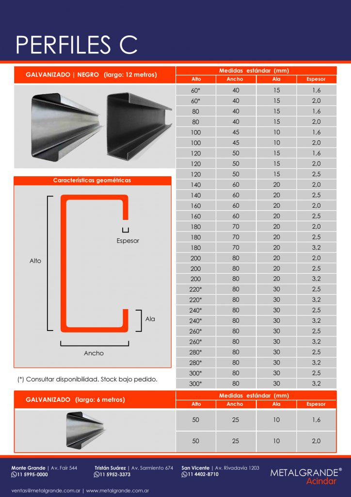 Perfiles C, galvanizado, Negro